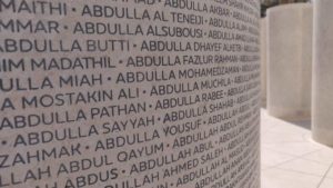 புகழ்பெற்ற லண்டனைச் சேர்ந்த கட்டிடக் கலைஞர் ஆசிப் கான் வடிவமைத்த தொழிலாளர் நினைவுச்சின்னத்தில், ஒவ்வொரு தொழிலாளியின் பெயரும் கல்வெட்டில் செதுக்கப்பட்டுள்ளது.