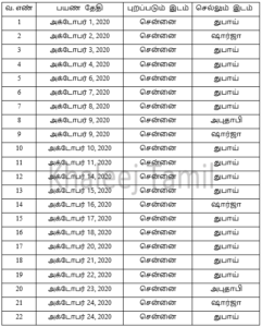 தமிழகத்தில் இருந்து அமீரகத்திற்கு அக்டோபர் மாதம் இயக்கப்படும் விமானங்களின் பட்டியல்..!!