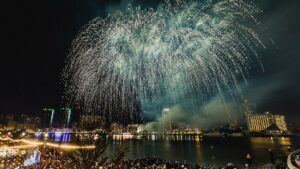 டிசம்பர் 2 ஆம் தேதி இரவு 8 மணிக்கு ப்ளூவாட்டர்ஸ் பகுதியில் வான வேடிக்கை நிகழ்ச்சிகள் நடத்தப்படும் என தெரிவிக்கப்பட்டுள்ளது. இங்கு எமிராட்டியர்களின் இசையுடன் உள்ளூர் கைவினைஞர்களும் சிறப்பு நிகழ்ச்சியில் பங்கேற்பார்கள் என கூறப்பட்டுள்ளது.