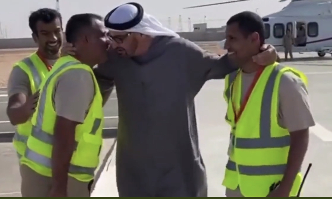 ஐக்கிய அரபு அமீரகத்தின் அதிபர் மாண்புமிகு ஷேக் முகமது பின் சயீத் அல் நஹ்யான் அவர்கள் மூன்று அமீரக ஊழியர்களுடன் சாதாரணமாக சிரித்துப் பேசும் வீடியோ சமூக வலைத்தளங்களில் வைரலாகி உள்ளது. கடந்த திங்கள்கிழமை ஷேக் முகமது அவர்கள் அபுதாபியில் உள்ள பராக்கா அணுமின் நிலையத்திற்கு பார்வையிடச் சென்றிருந்த போது இந்த மனதைக் கவரும் காட்சி படம்பிடிக்கப்பட்டுள்ளது.
