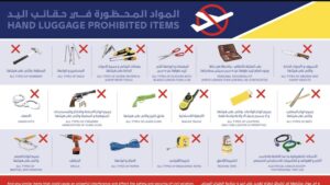 ஐக்கிய அரபு அமீரகத்தின் பொது சிவில் விமானப் போக்குவரத்து ஆணையத்தின் (General Civil Aviation Authority) வழிகாட்டுதல்களின்படி, பயணத்தின்போது எடுத்துச் செல்ல அனுமதிக்கப்படும் மற்றும் தடை செய்யப்படும் பொருள்கள் கீழே கொடுக்கப்பட்டுள்ளன.