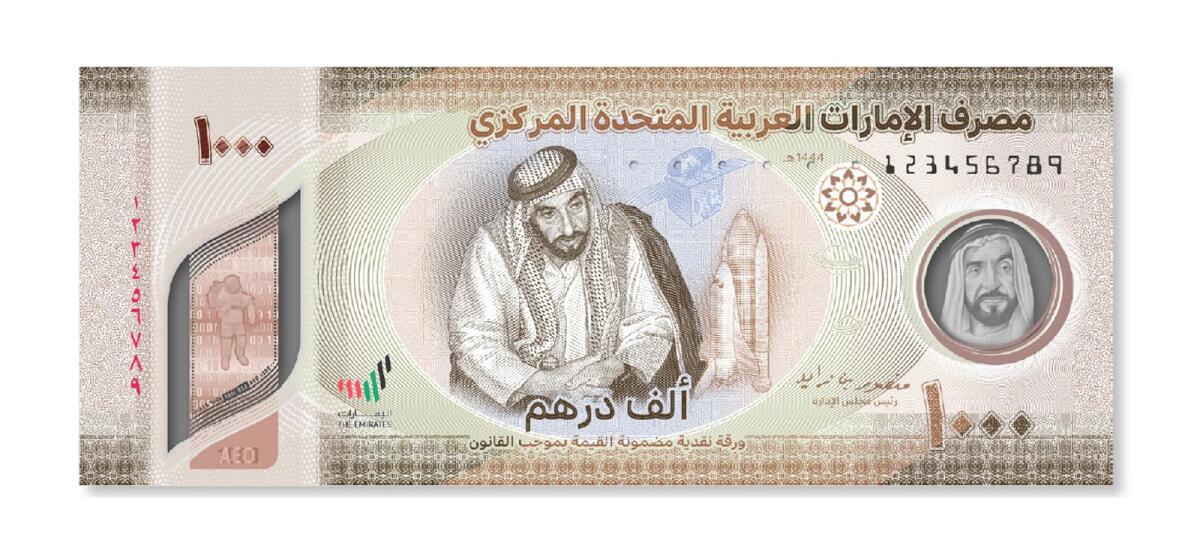 ஐக்கிய அரபு அமீரகத்தின் மத்திய வங்கியானது (Central Bank of the UAE -CBUAE) பாலிமரால் செய்யப்பட்ட புதிய 1,000 திர்ஹம் நோட்டை புழக்கத்திற்காக வெளியிட்டுள்ளது. புதிய திர்ஹம் நோட்டுகள் எதிர்வரும் ஏப்ரல் 10, 2023 முதல் வங்கிகள் மற்றும் பரிவர்த்தனை மையங்களில் விநியோகிக்கப்படும் என கூறப்பட்டுள்ளது.