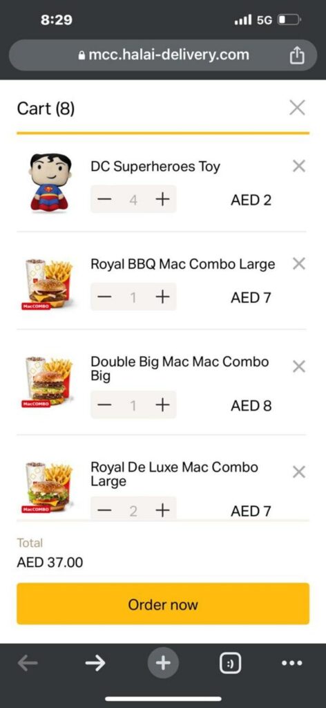 பாதிக்கப்பட்டவர் கூறிய விவரங்களின் படி, பிரபல துரித உணவு (fast food) நிறுவனத்தின் உண்மையான வலைத்தளம் என்று நினைத்து பர்கர், குளிர்பானங்கள் மற்றும் சிலவற்றை ஆர்டர் செய்துள்ளார். அதற்கான தள்ளுபடி சலுகையைத் தவிர்த்து அவர் ஆர்டர் செய்த பொருட்களுக்கான பில் 37 திர்ஹம்கள்தான். ஆனால் அவரிடம் இருந்து 4,848 திர்ஹம் வசூலிக்கப்பட்டிருக்கிறது. அதுமட்டுமின்றி, ஆர்டர் செய்த உணவும் டெலிவரி செய்யப்படவில்லை.