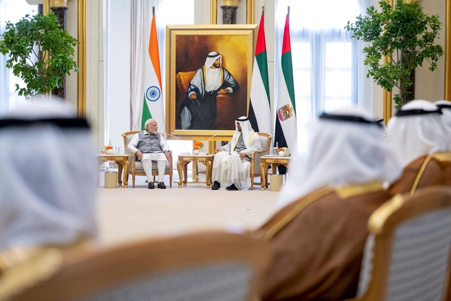 ஐக்கிய அரபு அமீரகத்திற்கு வருகை தந்த இந்திய பிரதமர் நரேந்திர மோடிக்கு அமீரகத்தின் ஜனாதிபதி மாண்புமிகு ஷேக் முகமது பின் சயீத் அல் நஹ்யான் அவர்களின் தலைமையில் இன்று சனிக்கிழமை பிற்பகல் அபுதாபியில் உள்ள கஸ்ர் அல் வதானில் பிரம்மாண்ட வரவேற்பு அளிக்கப்பட்டது.