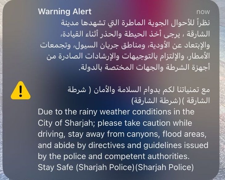 அதுபோல, ஷார்ஜா எமிரேட்டிலும் அல் ஹியார் மற்றும் அல் ஷிவைப் பகுதிகளில் மழைப் பதிவாகியுள்ளது. எனவே, வாகன ஓட்டிகள் சாலைகளில் கவனமாக செல்லவும், அதிகாரிகளால் வழங்கப்பட்ட வழிகாட்டுதல்களைப் பின்பற்றவும் அறிவுறுத்தப்பட்டுள்ளார்கள்.