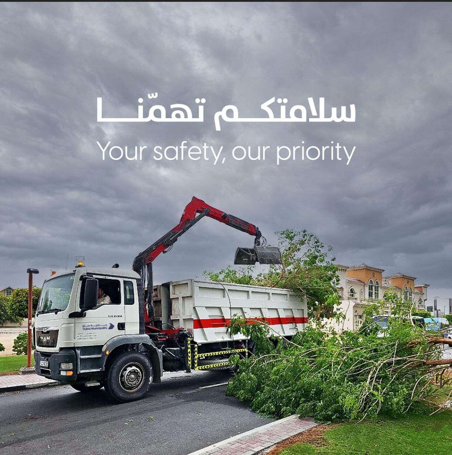 துபாய் முனிசிபாலிட்டி வானிலை முன்னறிவிப்பைத் தொடர்ந்து, விரைவாக முன்னெச்சரிக்கை நடவடிக்கைகளை மேற்கொண்டு மீட்பு குழுக்களை தயார் நிலையில் துபாய் வைத்திருந்தது. இதனால் மழை நின்றதும், துபாய் முழுவதும் அவசர அழைப்புகளுக்கு குழுவினர் விரைந்து செயலாற்ற தொடங்கினர்.