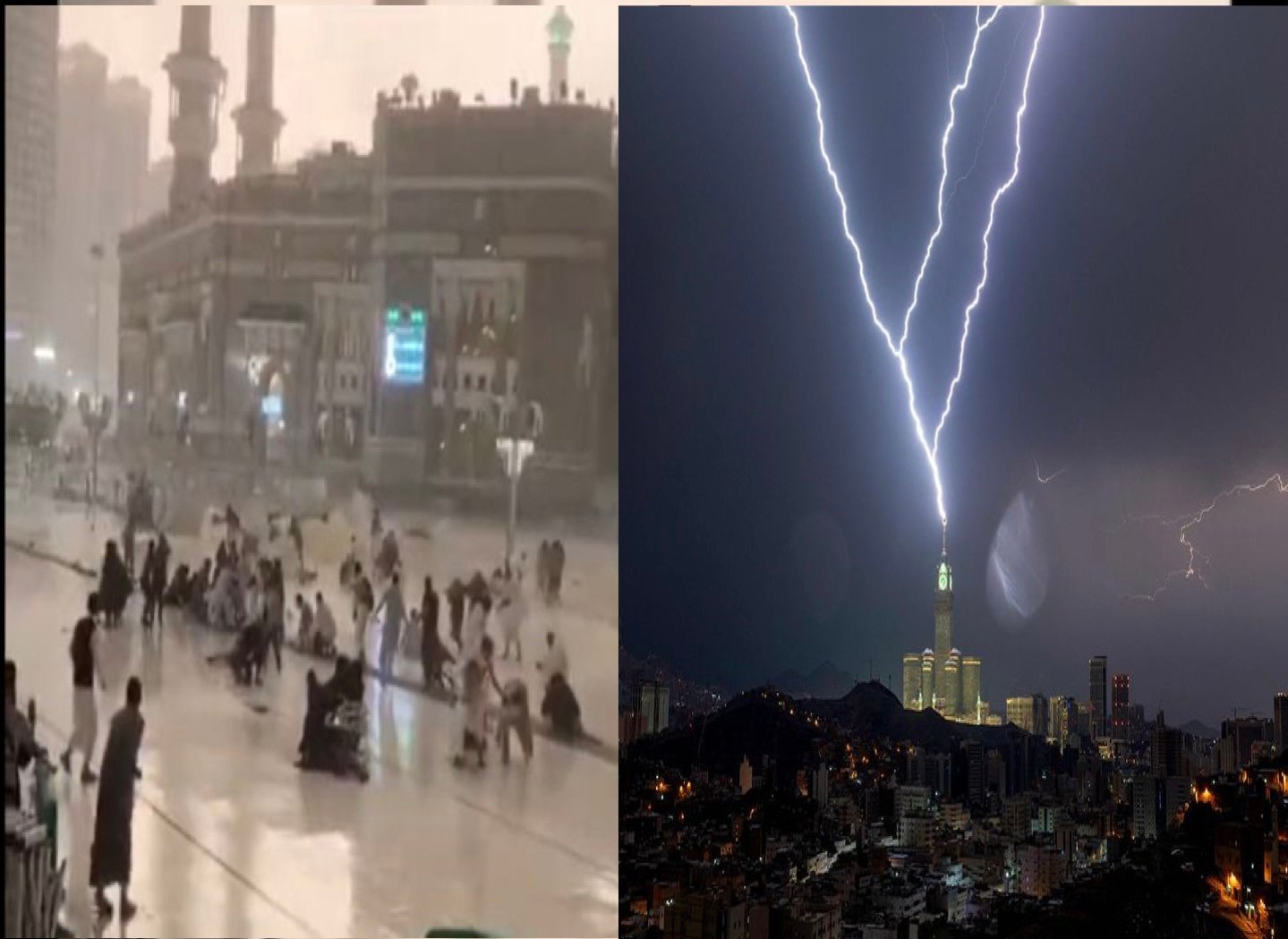 சவுதி அரேபியாவில் கடந்த சில நாட்களாக ஆங்காங்கே மழையும் இடியுடன் கூடிய மழையும் பெய்து வருகின்றது. இந்நிலையில் மெக்கா பகுதியில் செவ்வாய்க்கிழமை வீசிய கடுமையான புயல் மற்றும் மழையினால் மக்காவில் இயல்பு வாழ்க்கை பாதிக்கப்பட்டது. மேலும் மக்காவின் புனித மசூதியானது, ஒரே இரவில் பலத்த மழை மற்றும் காற்றால் தாக்கப்பட்டதாக நேரில் பார்த்தவர்கள் தெரிவித்துள்ளனர்.