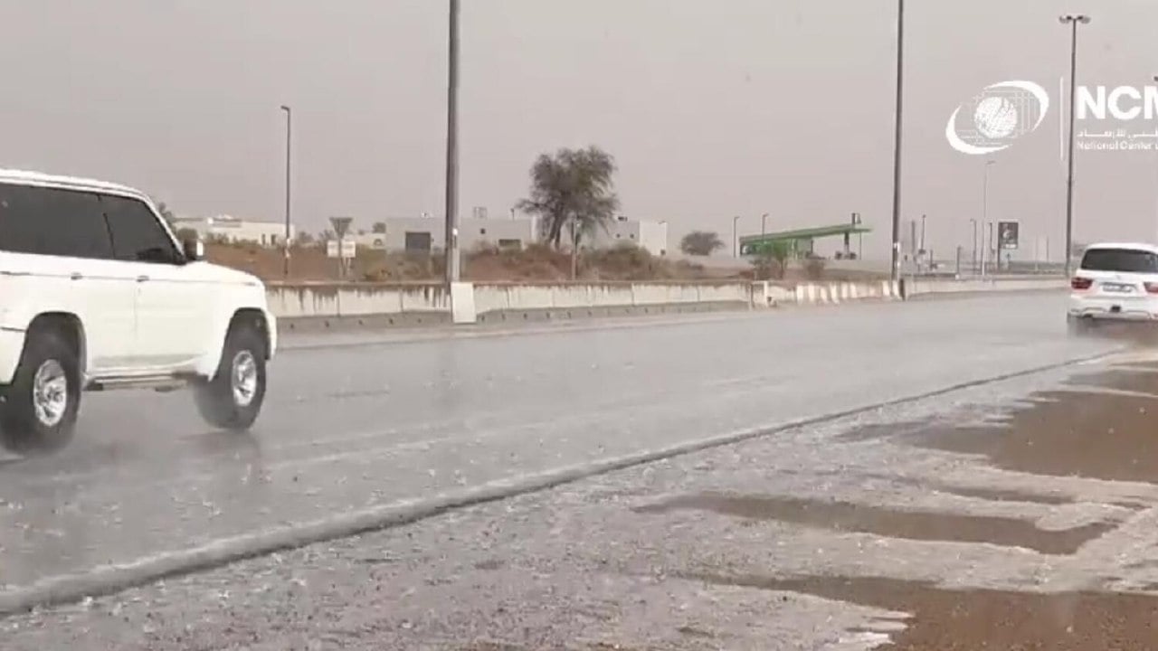 ஆலங்கட்டிகள் சரமாரியாக சாலைகள் மற்றும் அல் மடத்தில் உள்ள பாலைவனப் பகுதிகளில் சிதறும் வீடியோ கிளிப் ஒன்றினை ஸ்டார்ம் சென்டர் Xஇல் (முந்தைய Twitter) பகிர்ந்துள்ளது. அதுபோல NCM, அதே பகுதியில் பெய்த மழையில் வாகனங்கள் செல்லும் வீடியோ கிளிப்களைப் பகிர்ந்துள்ளது. அத்துடன் அபாயகரமான வானிலை நிகழ்வுகள் எதிர்பார்க்கப்படுவதாகவும் கூறியுள்ளது.