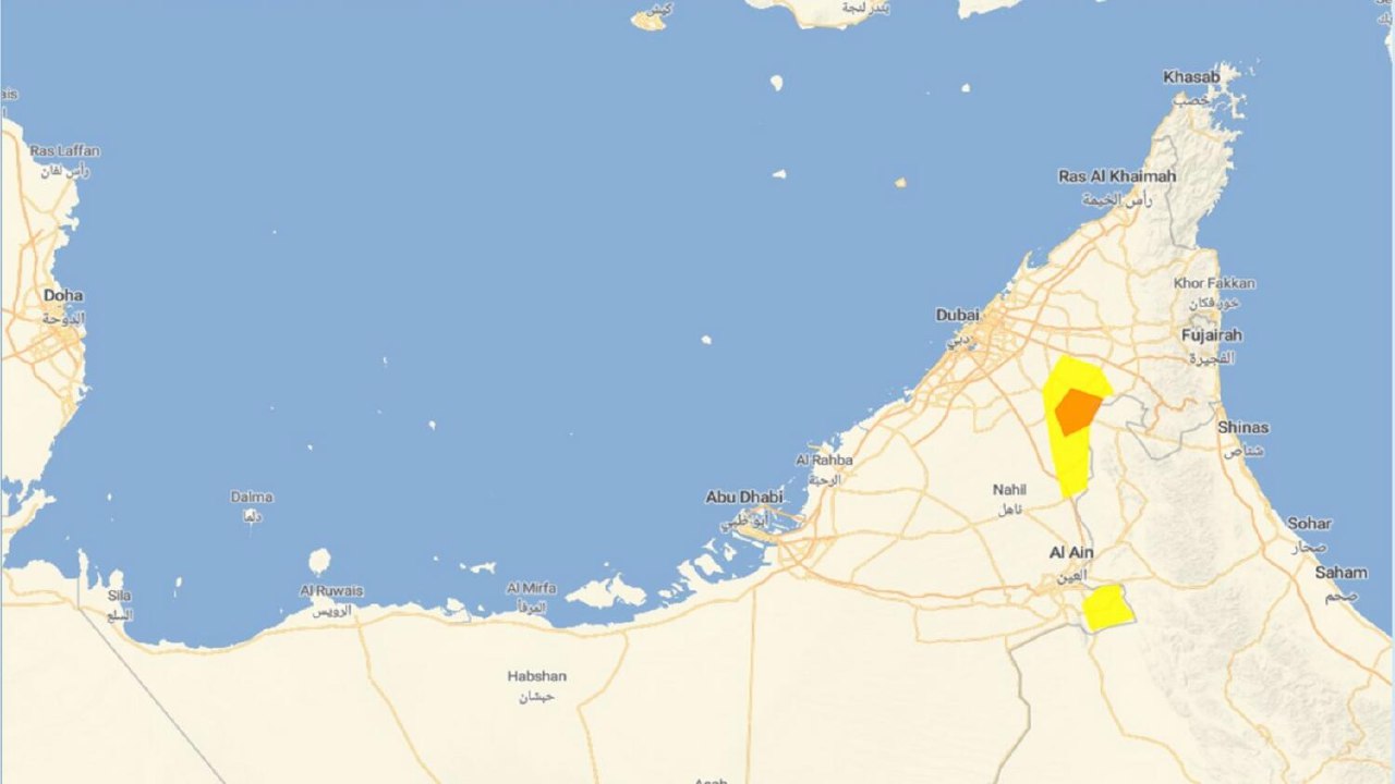 ஐக்கிய அரபு அமீரகத்தில் இன்று (வியாழன்) பிற்பகல் சில பகுதிகளில் கனமழை மற்றும் ஆலங்கட்டி மழை பெய்ததால், வானிலை அதிகாரிகள் மஞ்சள் மற்றும் ஆரஞ்சு எச்சரிக்கைகளை அறிவித்துள்ளனர்.