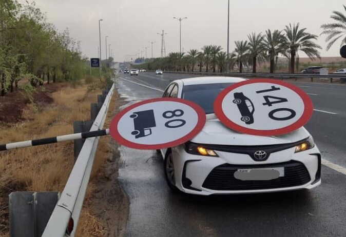 அவ்வாறு இருக்கையில், வெள்ளிக்கிழமையன்று துபாயைச் சேர்ந்த முஹம்மது சஜ்ஜாத் என்பவர், தனது குடும்பத்தினருடன் அபுதாபியில் உள்ள அல் ஹயார் பகுதியில் காரில் சென்றுகொண்டிருந்தபோது, ​​பலத்த காற்று மற்றும் கனமழை காரணமாக சாலையின் ஓரத்தில் காரை நிறுத்தியுள்ளார். அப்போது, வேகமாக வீசிய காற்றில் சைன்போர்டு ஒன்று அவரது கார் மீது விழுந்துள்ளது.