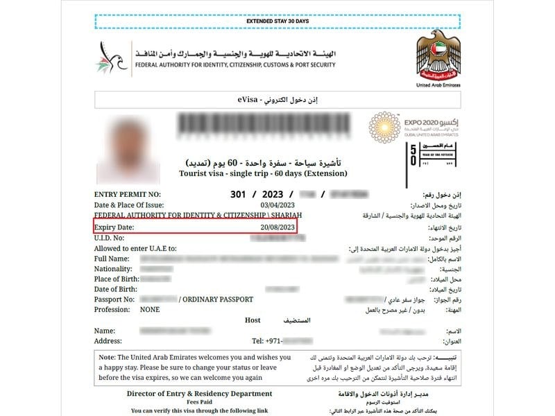 நீங்கள் ICP அல்லது துபாயின் GDRFA அல்லது ஏஜென்சி மூலம் விசிட் விசா அல்லது சுற்றுலா விசாவிற்கு நேரடியாக விண்ணப்பித்தால், பதிவு செய்யப்பட்ட இ-மெயில் முகவரியில் உங்கள் விசா நகலைப் பெறுவீர்கள். இந்த விசா நகலில், விசா எண்ணுக்குப் பிறகு, ‘expiry date’ என்று தெளிவாகக் குறிப்பிடப்பட்டிருக்கும். இது நுழைவு அனுமதி எண் என்றும் குறிப்பிடப்படுகிறது.
