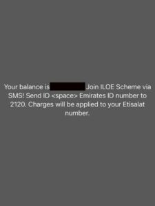 உங்களிடம் Etisalat மொபைல் லைன் இருந்தால், பின்வரும் வடிவத்தில் ‘2120’ என்ற எண்ணுக்கு SMS அனுப்ப வேண்டும்: