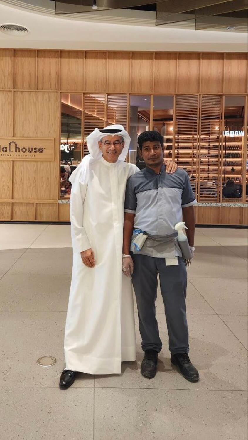 துபாய் மாலில் பணிபுரியும் தூய்மைப் பணியாளர் ஒருவருடன் தான் எடுத்துக் கொண்ட புகைப்படத்தை சமூக ஊடகங்களில் அவர் பகிர்ந்ததுடன், துபாய் மால் அழகியல் தோற்றத்தில் காட்சியளிப்பதற்கும் தூசிகள் இன்றி மிளிர்வதற்கும் ஆரிஃப் போன்றவர்கள் தான் காரணம் என்றும் புகழுரையை பதிவிட்டுள்ளார்.