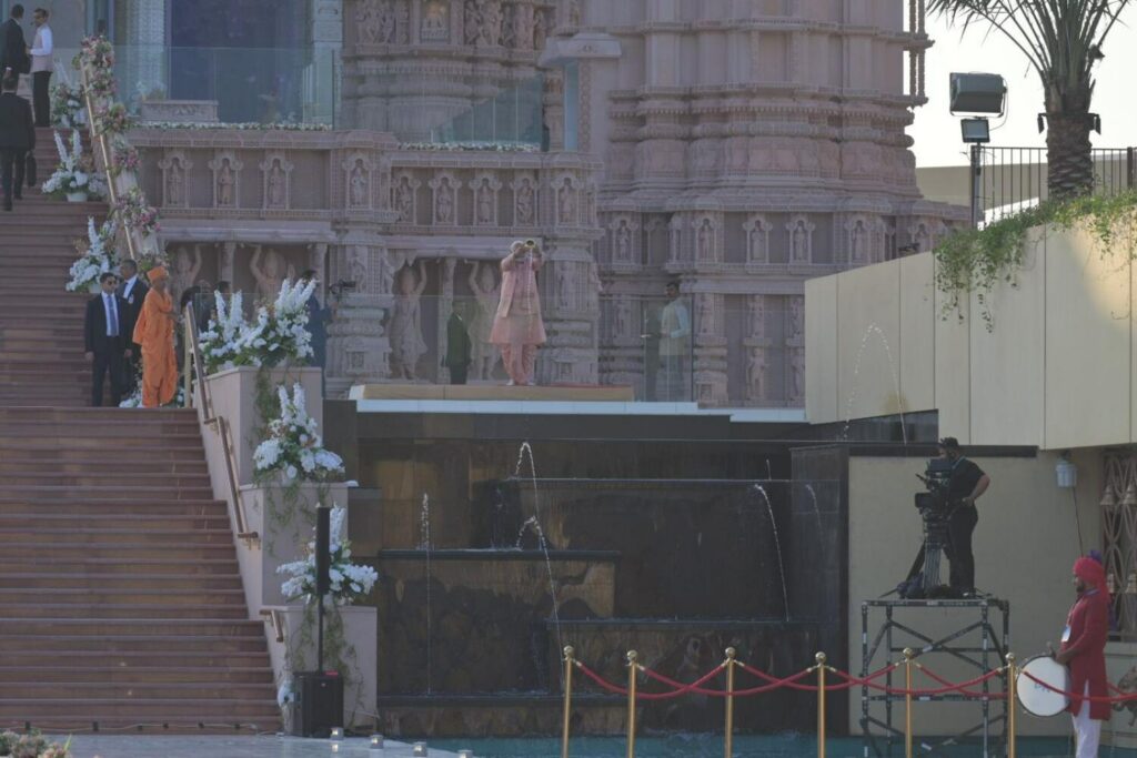 BAPS சுவாமிநாராயண் சன்ஸ்தாவின் தற்போதைய ஆன்மீக குருவான புனித மஹந்த் சுவாமி மகராஜ் வேத விழாவிற்கு தலைமை வகித்த நிலையில், பிரதமர் மோடி BAPS இந்து கோவிலை ரிப்பன் வெட்டி திறந்து வைத்துள்ளார்.