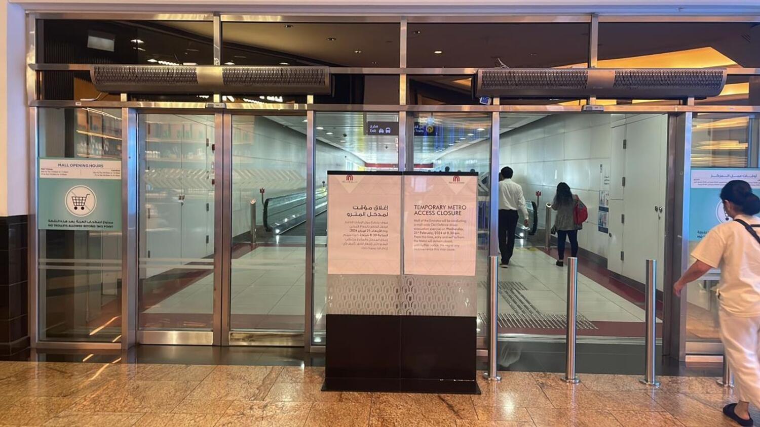 துபாயில் உள்ள மால் ஆஃப் தி எமிரேட்ஸ் வணிக வளாகத்திற்கான மெட்ரோ நுழைவாயில் இந்த வாரம் தற்காலிகமாக மூடப்படுவதாக அறிவிக்கப்பட்டுள்ளது. மாலின் மெட்ரோ நுழைவாயிலுக்கு வெளியே ஒட்டப்பட்டுள்ள நோட்டீஸில் இது குறித்து தெரிவிக்கப்பட்டுள்ளது.