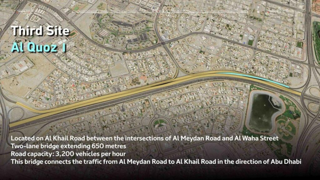 அல் மேதான் சாலை மற்றும் அல் வஹா ஸ்ட்ரீட் இன்டர்செக்ஷன்களுக்கு இடையிலான பணி: அல் மேதான் சாலையில் இருந்து அபுதாபியின் திசையில் அல் கைல் சாலையில் போக்குவரத்தை இணைக்கும் வகையில் இருவழிப் பாலம் கட்டப்படும். அல் கைல் சாலையில் இருந்து அல் வஹா ஸ்ட்ரீட் மற்றும் லதிஃபா பின்ட் ஹம்தான் ஸ்ட்ரீட் வரை போக்குவரத்தை இணைக்க இந்த மேம்பாடுகள் உதவும் என்று கூறப்பட்டுள்ளது.