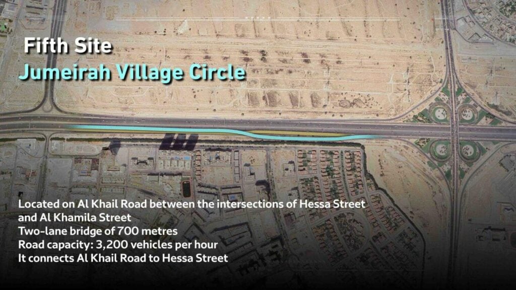 ஹெஸ்ஸா மற்றும் அல் கமிலா ஸ்ட்ரீட்களுக்கு இடையிலான பணி: ஜுமைரா வில்லேஜ் சர்க்கிளில் இருந்து அல் கைல் சாலை வரை தேரா திசையில் போக்குவரத்து இணைப்பை மேம்படுத்தும் வகையில், அல் கைல் சாலையில் இருந்து ஹெஸ்ஸா ஸ்ட்ரீட்டுக்கு வரும் போக்குவரத்தை இணைக்கும் வகையில் இருவழிப் பாலம் அமைக்கப்படும்.