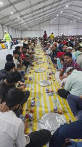 அதுமட்டுமில்லாமல், மாலை 5:30 மணிக்கு, தன்னார்வலர்கள் இஃப்தார் விருந்துக்கு வசதியாக மக்களை நேர்த்தியான வரிசைகளில் அமரச் செய்து, உணவு உடனடியாகவும் கவனமாகவும் வழங்கப்படுவதை உறுதிசெய்து மேற்பார்வை செய்கிறார்கள் எனவும் தெரிவிக்கப்பட்டுள்ளது. இறுதியாக, விருந்தினர்கள் இஃப்தாரை முடித்தவுடன், தன்னார்வலர்கள் கூடாரத்தை விரைவாக சுத்தம் செய்து, மறுநாள் இஃப்தார் விருந்துக்கு வரவேற்க அதை தயார் செய்கிறார்கள்.