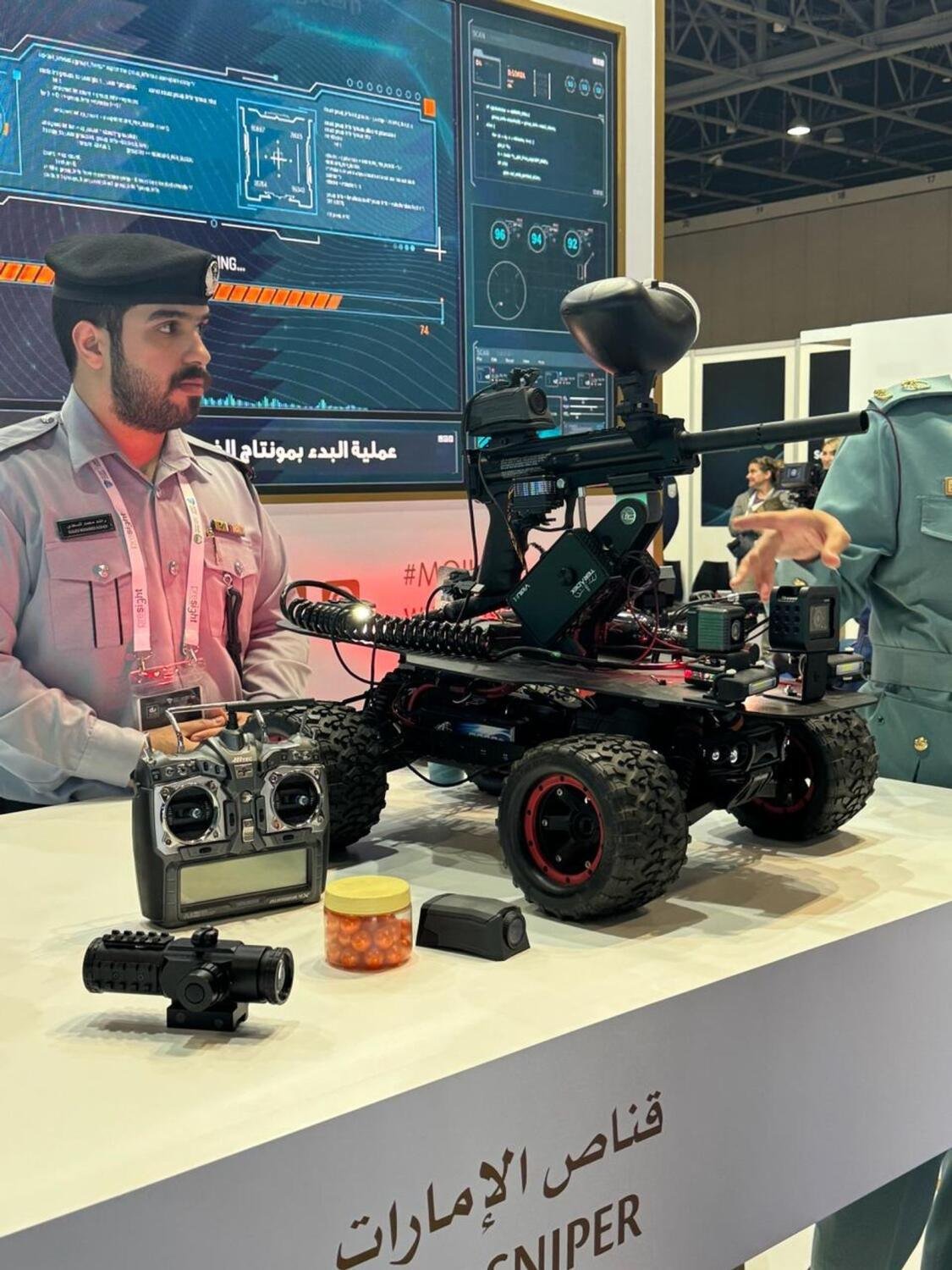 UAE ஸ்னைப்பர் என்று அழைக்கப்படும் இந்த ரோபோடிக் சாதனம் பெயிண்ட்பால்களை சந்தேகத்திற்குரிய குற்றவாளி அல்லது இடத்தில் சந்தேகத்திற்குரிய நபர் அல்லது இடம் என்பதை குறிக்க சுடும் என்றும் கூறப்படுகிறது. அஜ்மான் காவல்துறையால் உருவாக்கப்பட்ட இந்த சாதனம், மூன்று மாதங்களுக்கும் மேலாக பயன்படுத்தப்பட்டு, தற்போது 98 சதவீத துல்லியத்தைப் பெற்றுள்ளதாகவும் கூறப்படுகிறது.