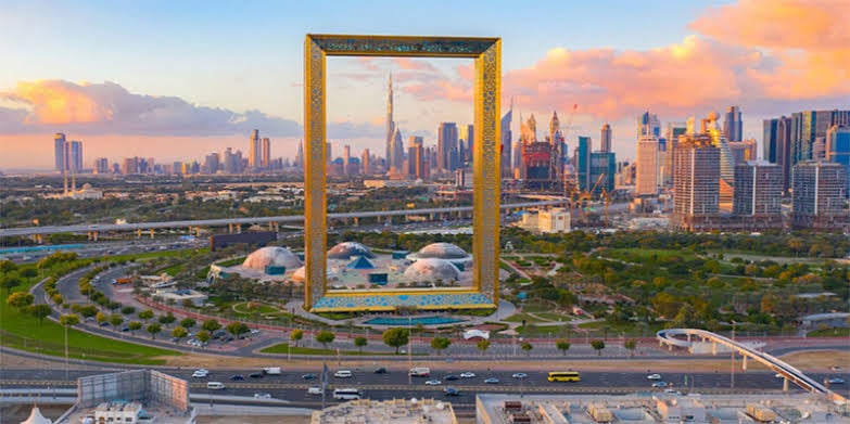 துபாய் ஃபிரேம் என்பது பழைய மற்றும் புதிய துபாயின் ஈர்க்கக்கூடிய காட்சிகளை ‘ஃபிரேம்’ செய்யும் ஒரு ஐகானிக் அமைப்பாகும். ஜபீல் பூங்காவிற்கு உள்ளே 150 மீட்டர் உயரத்தில் அமைந்துள்ள இந்த ஃபிரேம், ஒருபுறம், இது நகரத்தின் வளமான கடந்த காலத்தைப் பற்றிய ஒரு பார்வையையும், மறுபுறம் அதன் பளபளப்பான மற்றும் அற்புதமான நிகழ்காலத்தையும் பார்வையாளர்களுக்கு காட்சிப்படுத்தும்.