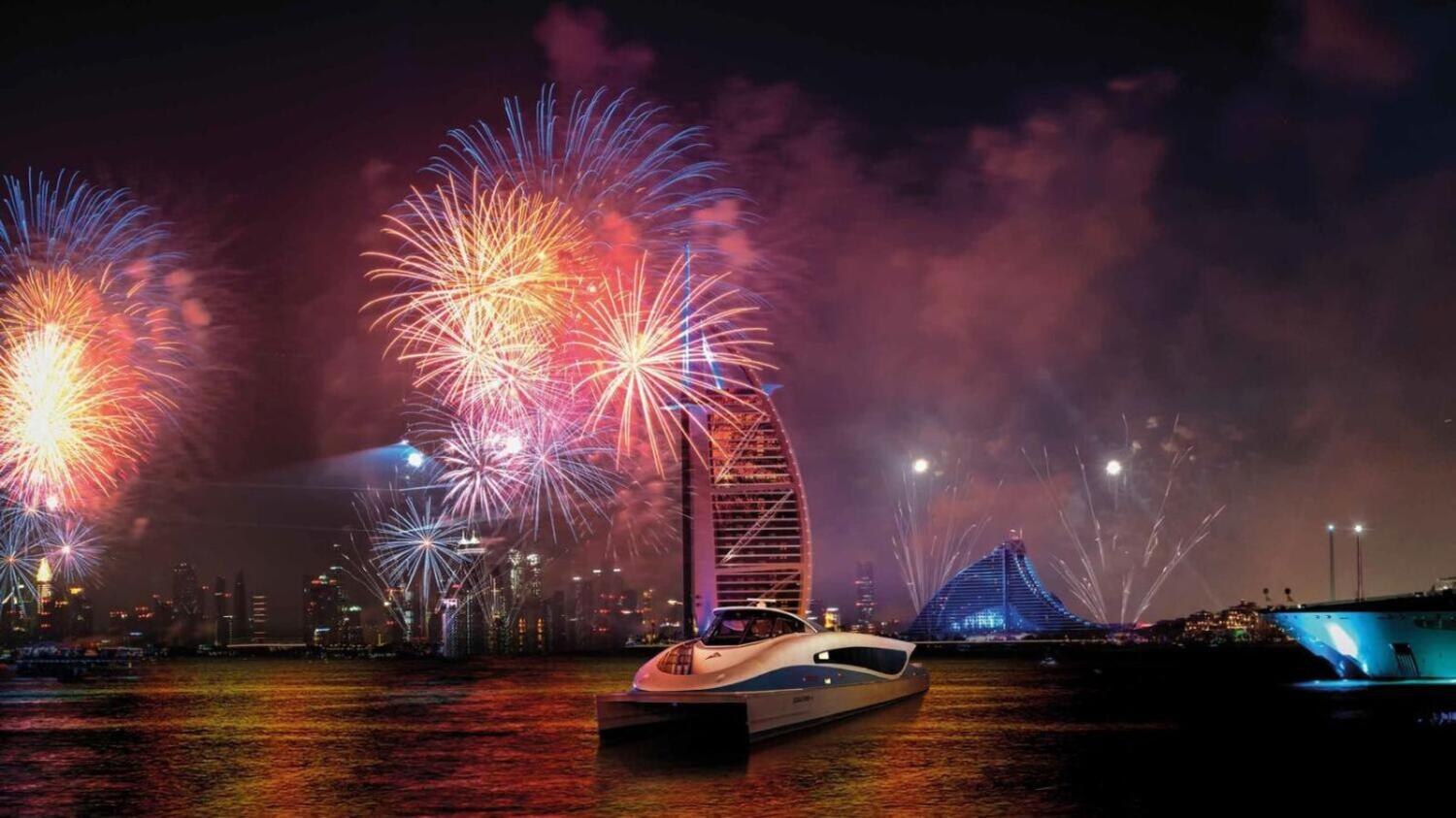துபாய் முழுவதும் நாளை செவ்வாய்க்கிழமை இரவு வானை அலங்கரிக்கும் கண்கவர் வானவேடிக்கை நிகழ்ச்சிகள் மற்றும் ட்ரோன் ஷோக்களுடன் புத்தாண்டு கொண்டாட்டங்கள் களைகட்டவிருக்கிறது. அவ்வாறு இரவு வானத்தை ஒளியூட்டும் வண்ணமயமான பாட்டாசு காட்சிகளை எமிரேட்டின் நீர்ப்பரப்பில் மிதந்தவாறு ரசிப்பது அலாதியான அனுபவத்தைக் கொடுக்கும்.