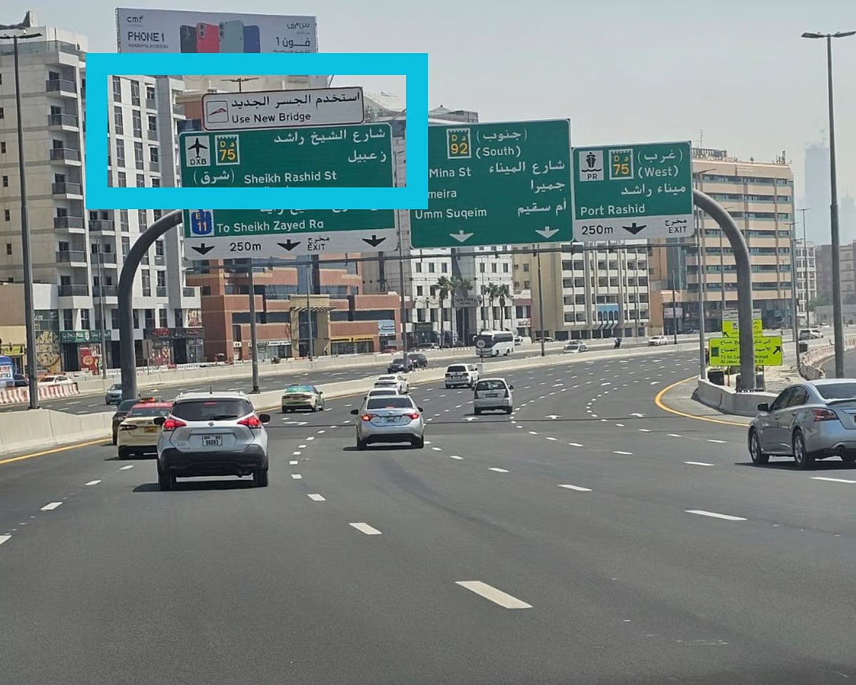 அவர் இத்திஹாத் சாலை, ஏர்போர்ட் டன்னல் சாலை மற்றும் ஷேக் முகமது பின் சையத் சாலை போன்ற நெரிசலான சாலைகளைத் தவிர்த்து, கார்னிச் ஸ்ட்ரீட், இன்ஃபினிட்டி பிரிட்ஜ், அதன் பின் அல் கைல் சாலைக்கு புதிய பாலத்தைப் பயன்படுத்துவதாகக் கூறியுள்ளார்.